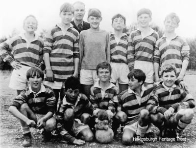 The Clyde Street School team which played in the 1965 Don Cup final at East King Street Park, with manager Willie Cowe, the school janitor. Back row: Steven Thorpe, William Bell, ?, Donald Paterson, George Murray, Edward McKell; front: Jim Urquhart, Bill McKechnie, Paul ?, Simon Fraser, Walter Dolan.